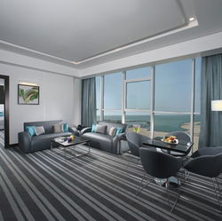 It features many must-see sights such as Al Fateh Mosque, which is one of the largest mosques in the world, capable of accommodating over 7,000 worshipers at a time. Take a pleasant stroll along the seaside promenade, al Fateh Corniche, while taking in extensive waterfront views of the city's skyscrapers, The Bahrain World Trade Center, and Bahrain International Airport, just 3 miles away from the center of the city.