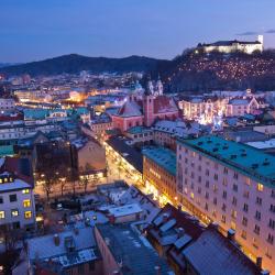 With a tapestry of landscapes, enchanting architecture and welcoming locals, Slovenia packs a lot into its borders. Over half the country is covered with verdant valleys, making it one of the greenest in the world. In the northwest, the snow-capped peaks of the Julian Alps feed several emerald-green lakes. The most famous of these is Lake Bled, with its small church on a picturesque island, and medieval castle overlooking it all from the clifftop. Take a step back to admire its fairytale-like beauty, then catch your breath and dive in for a swim. Elsewhere there are many more natural treasures waiting to be explored. The northern region is dominated by verdant countryside, such as Savinja and Šalek Valley. Here you’ll discover soaring peaks, hot springs, crashing waterfalls and crystal-clear streams. To the southwest, you’ll find the Postojna Caves, home to countless underground tunnels and chambers, and a remarkable medieval castle that looks like it’s growing out of a cave – it has to be seen to be believed. All this is within day-tripping distance of Ljubljana, the pocket-sized capital which sits at the heart of the country. Here, baroque facades blend with the 20th-century architecture. Wander across iconic Triple Bridge, or take the funicular railway up to Ljubljana Castle, before winding down the afternoon with a coffee in delightful Prešeren Square. The majority of hotels, hostels, and apartments are found in Ljubljana and the eastern city of Maribor. In the north, Kranjska Gora, Slovenia’s top ski resort, boasts a range of chalets and lodges.
